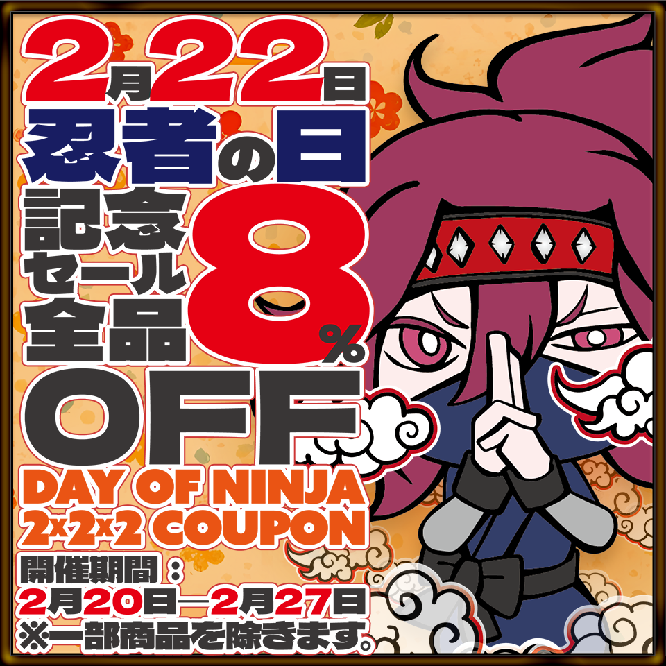 こちらのクーポンを決済時に適用していただくと全品8%OFFとなります。